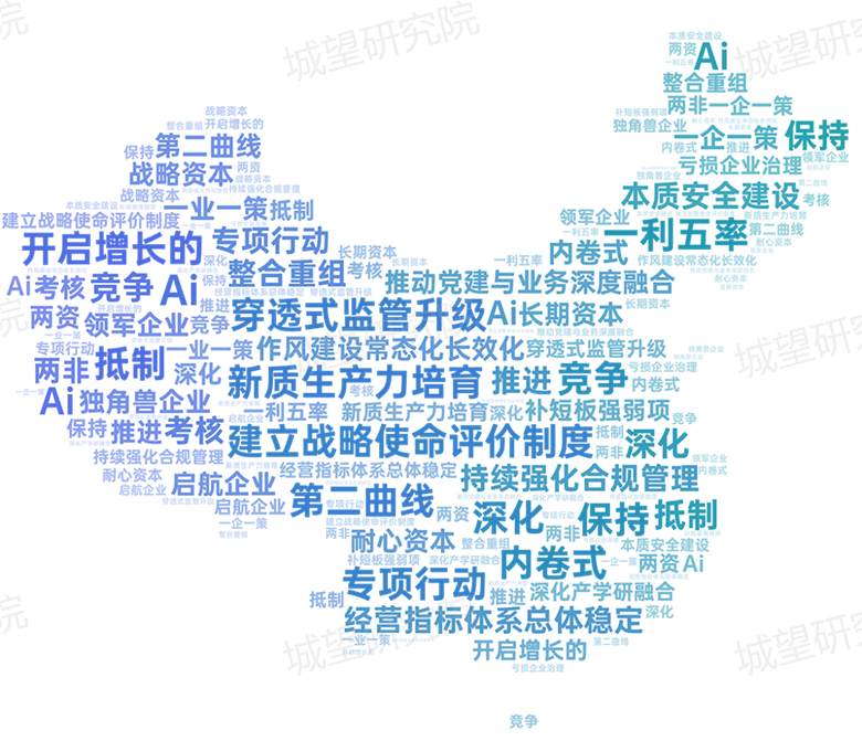 纵观2025年国务院国资委召开的二十一场重要会议,2025年国企改革在延续深化提升行动的基础上,提出了一系列具有战略导向和实践创新的新提法,核心聚焦于培育新动能、重塑治理体系、优化监管模式等关键领域,强调新质生产力培育、穿透式监管升级、建立战略使命评价制度、深化“AI+”专项行动、开启增长的“第二曲线”、抵制“内卷式”竞争、保持“一利五率”经营指标体系总体稳定、持续强化合规管理等方面(图1),这些概念不仅是政策表述的创新,更是推动国企从规模型向质量型、从管控型向赋能型转型的具体抓手。会议涵盖改革深化、科技创新、监管升级、绿色转型等关键领域(图1):