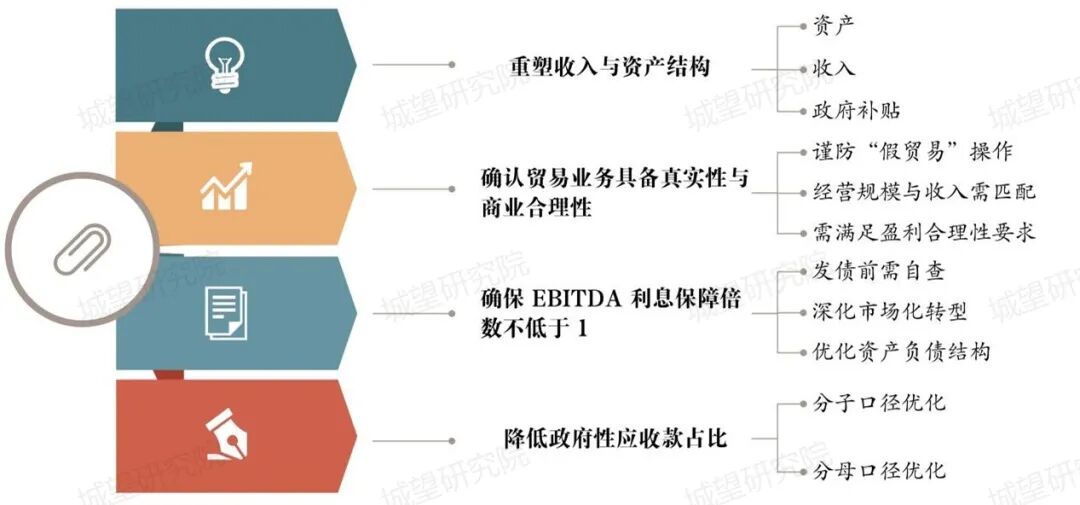 2025年3月,沪深交易所发布《公司债券发行上市审核规则适用指引——审核重点关注事项(2025年修订)》(简称新“3号指引”)。结合“一揽子化债”政策要求,城望梳理出当前监管政策下的发债新增融资路线图(图1)。