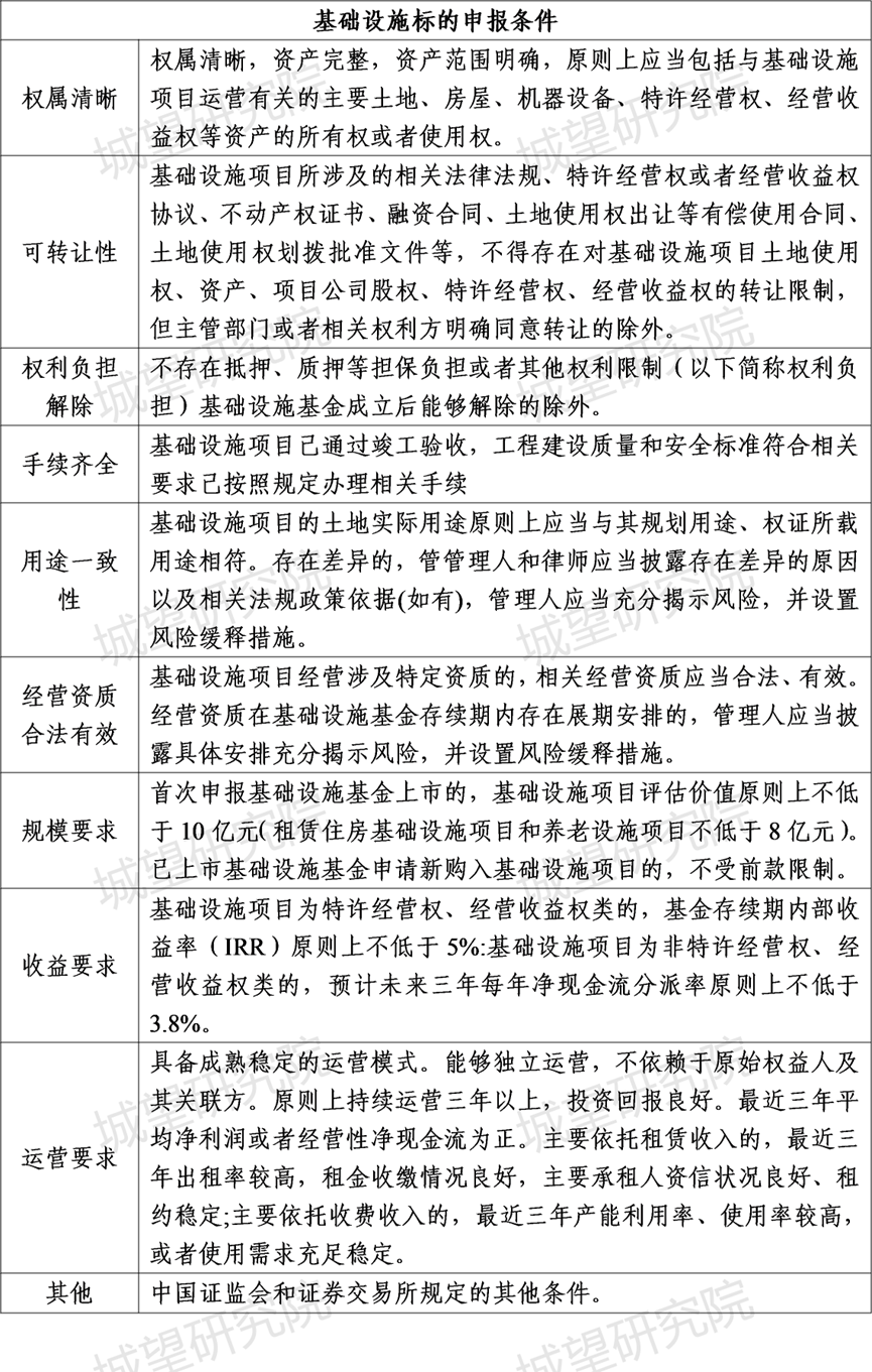 附:基础设施标的申报条件