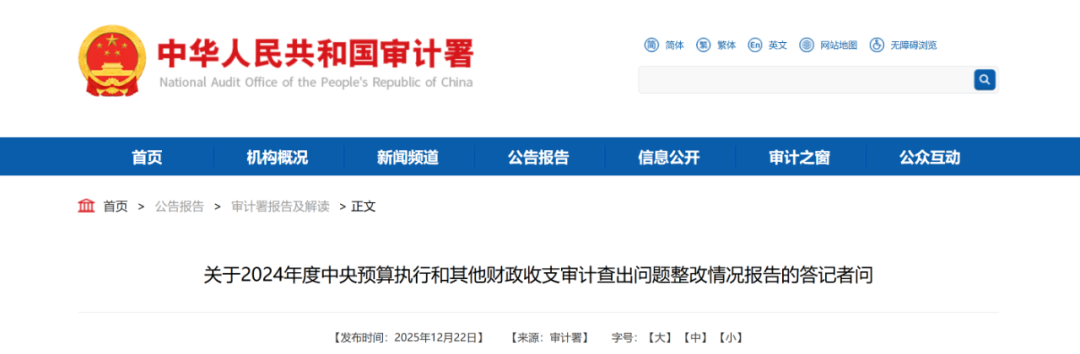来源:审计署、第一财经。若文中内容涉及版权问题或需引用授权,欢迎随时通过公众号后台留言与我们联系,我们将第一时间妥善处理。