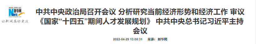 新华社北京4月29日电 中共中央政治局4月29日召开会议,分析研究当前经济形势和经济工作,审议《国家“十四五”期间人才发展规划》。中共中央总书记习近平主持会议。对于当前疫情防控政策、宏观政策、房地产、平台经济、资本市场,此次会议作出重要决策部署,释放一系列重磅信号。
